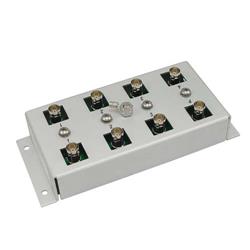 L-com的CMSP-VIDEO-4四芯端口浪涌保護器防止視頻設備遭受雷擊或噪聲較大的電氣設備產生的破壞性電涌。這些裝置是保護監控攝像頭、DVR、監控PC和視頻監視器的理想之選。這些裝置也將保護連接75歐姆同軸線路的射頻和視頻設備。 CMSP-VIDEO-4利用與低電容二極管陣列對應的雪崩二極管。這樣,可以盡量降低線路的電容性負載并實現超過競爭對手的型號的頻率響應。CMSP-VIDEO-4將同軸線纜屏蔽與裝置的接地端子相連。 有關采用絕緣BNC連接器的型號,請參考CMSP-VIDEO-4I。 堅固的鋁機箱可以裝在墻上或架子上。此裝置具有安裝孔。各保護器模塊可以在現場更換。 有關其他信息和完整技術規格,請參見下面的數據表。 特征