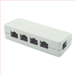 L-com's innovative splitter design gives you up to five RJ45 ports in a minimum of space. One end mounted RJ45 jack is connected via an integral circuit board to four other RJ45 jacks. Two different wiring tables are offered as standard products including a fully populated straight through version and an ISDN pair splitter. Each adapter is made with an ABS plastic housing for durability. Both designs have the option of shielded jacks and connections. Custom designs are welcome with modest minimums.