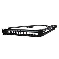 L-com now offers a compact 1U (1.75") Rack Height V-Type Panel designed to accommodate 24 Keystone style couplers in an angled orientation. The V-shape of the panel reduces strain on the installed connectors minimizing the need for rack mounted cable management bars in some configurations. The PR175V24KS-CM also comes with a rear cable management bracket accessory kit that can be installed to provide a means to organize and secure your patch cabling. Same day shipping on most items; Order online today!