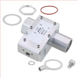 RF surge protector (also known as lightning arrester) LCSP1034 from L-com utilizing a patented filter surge protection technology acts as a high-band filter shunting surge energy to ground to protect critical hardware while maintaining the RF performance. This RF surge protector component is manufactured in a coaxial in-line design with wide operating frequency range and available in stock with same day shipping .