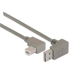 直角型USB线缆,下出线A型公头/右出线B型公头,0.3米
