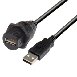 USB2.0 线缆 , 防水面板安装 A 型母头 / A 型公头 , 0.5m, 黑色